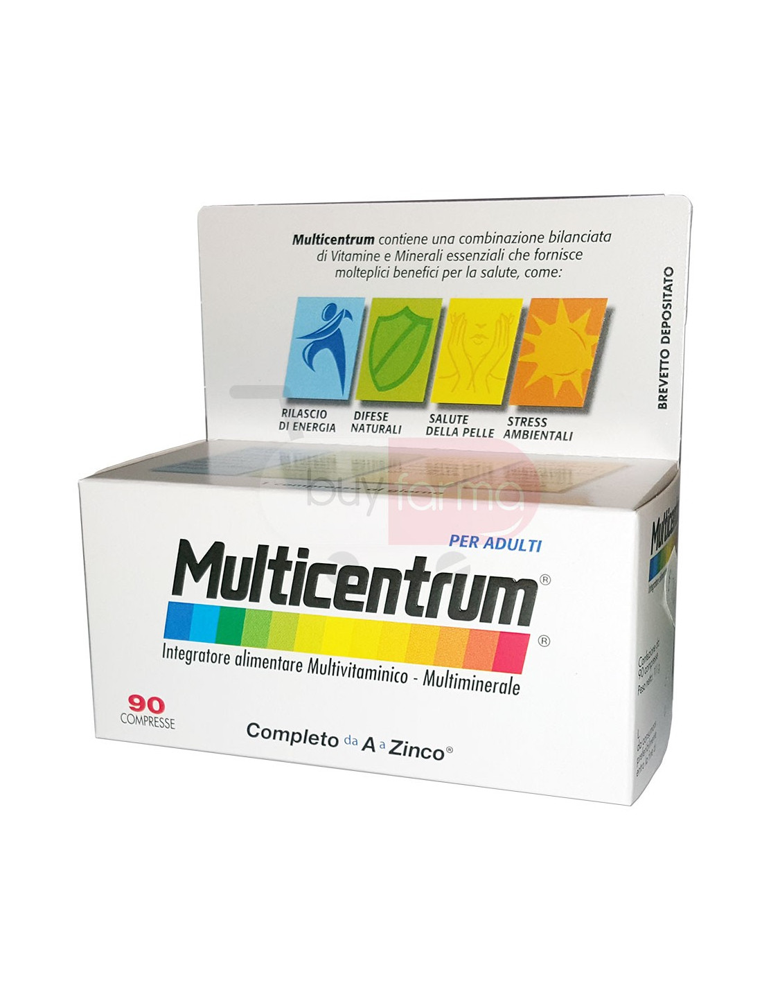 Caratteristiche Prodotto La formulazione di Multicentrum è completa e bilanciata, perché fornisce un equilibrato apporto giornaliero di tutte le vitamine e dei principali minerali. L’uso di Multicentrum può essere utile, ad esempio, nei casi di ridotto apporto di nutrienti con la dieta, quando la dieta non può essere modificabile e quindi corretta. Oppure nei casi di aumento del fabbisogno di nutrienti, ad esempio in situazioni di stress dovute ad un elevato impegno psicofisico, in periodi di intensa attività fisica e sportiva o durante stati di convalescenza. La formula di Multicentrum contiene specifici quantitativi di vitamine e minerali che forniscono molteplici benefici quotidiani come: rilascio di energia, difese naturali, salute della pelle, protezione dagli stress ambientali. Consigli d'uso Si consiglia di assumere 1 compressa al giorno da deglutire con un bicchiere d'acqua.