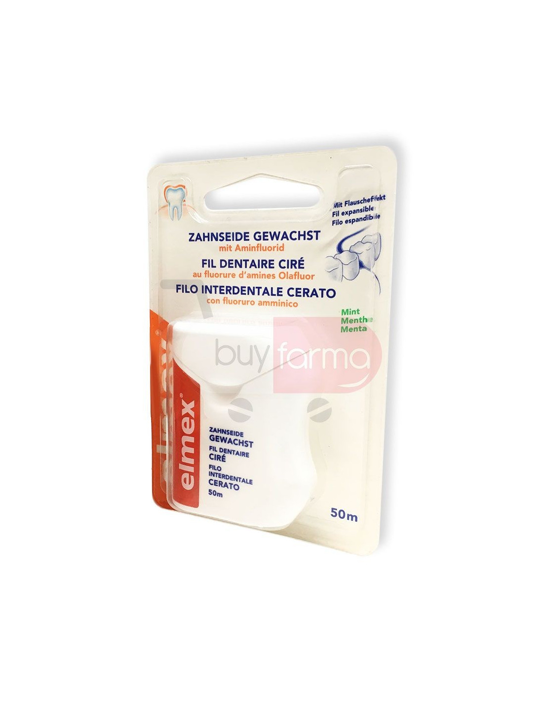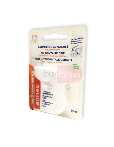 Elmex Filo Interdentale Cerato da 50m con fluoruro amminico, gusto menta fresca. (...)Caratteristiche ProdottoIl filo interdentale Cerato Elmex rimuove efficacemente la placca e i residui di cibo negli spazi interdentali e in questo modo aiuta a prevenire le carie e i problemi gengivali.Grazie alla sua speciale fibra, il filo si dilata quando viene utilizzato negli spazi interdentali, permettendo così una pulizia accurata.