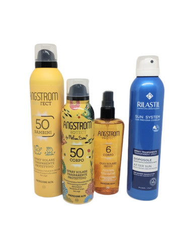 Angstrom Promo Pack Famiglia - Spray Solare Adulto e Bambino, Olio Solare e Doposole Omaggio