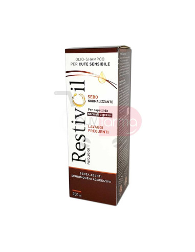Caratteristiche Prodotto Restivoil è la linea di olio shampoo specifici per la cute più sensibile: soggetta ad irritazioni, pruriti, dermatiti seborroiche forfora.I componenti oleosi di Restivoil, uniti all'assenza di agenti schiumogeni aggressivi, assicurano infatti una detersione efficace e profonda, nel massimo rispetto della cute. I componenti oleosi di Restivoil sono affini alla composizione chimica del film idrolipidico che ricopre fisiologicamente il cuoio capelluto, nutrendolo e proteggendolo.In presenza di cute sensibile questo film risulta danneggiato.L'affinità tra i componenti consente non solo una detersione ultra delicata, ma anche un costante riequilibrio di tale film.I corretti equilibri della cute vengono rispettati e i capelli sono più belli. Restivoil è volutamente privo di SLES e SLS, diffusissimi agenti schiumogeni aggressivi che tendono a rimuovere anche lo strato fisiologico di film idrolipidico presente sulla cute, alterando i naturali equilibri del capello.La ridotta formazione di schiuma di Restivoil è, dunque, dimostrazione di maggiore delicatezza. Restivoil grazie ai suoi componenti seboaffini, deterge per affinità e non per contrasto. Agisce selettivamente, riconoscendo la cute secca o grassa, per rimuovere le impurità rispettando il corretto equilibrio sebaceo. Restivoil Fisiologico è arricchito con Estratto di Bardana e Ortica, componente che potenzia l'azione sebo-regolatrice e purifica la cute in profondità, è indicato per tutti i tipi di capelli, specialmente quelli normali o grassi. Consigli d'uso Si consiglia di utilizzare Restivoil Fisiologico sui capelli umidi massaggiando per almeno un minuto.La ridotta formazione di schiuma è dovuta all'assenza di agenti schiumogeni aggressivi.Sciacquare con abbondante acqua tiepida, se necessario ripetere l'applicazione. Grazie alla sua delicatezza è indicato anche per lavaggi quotidiani.