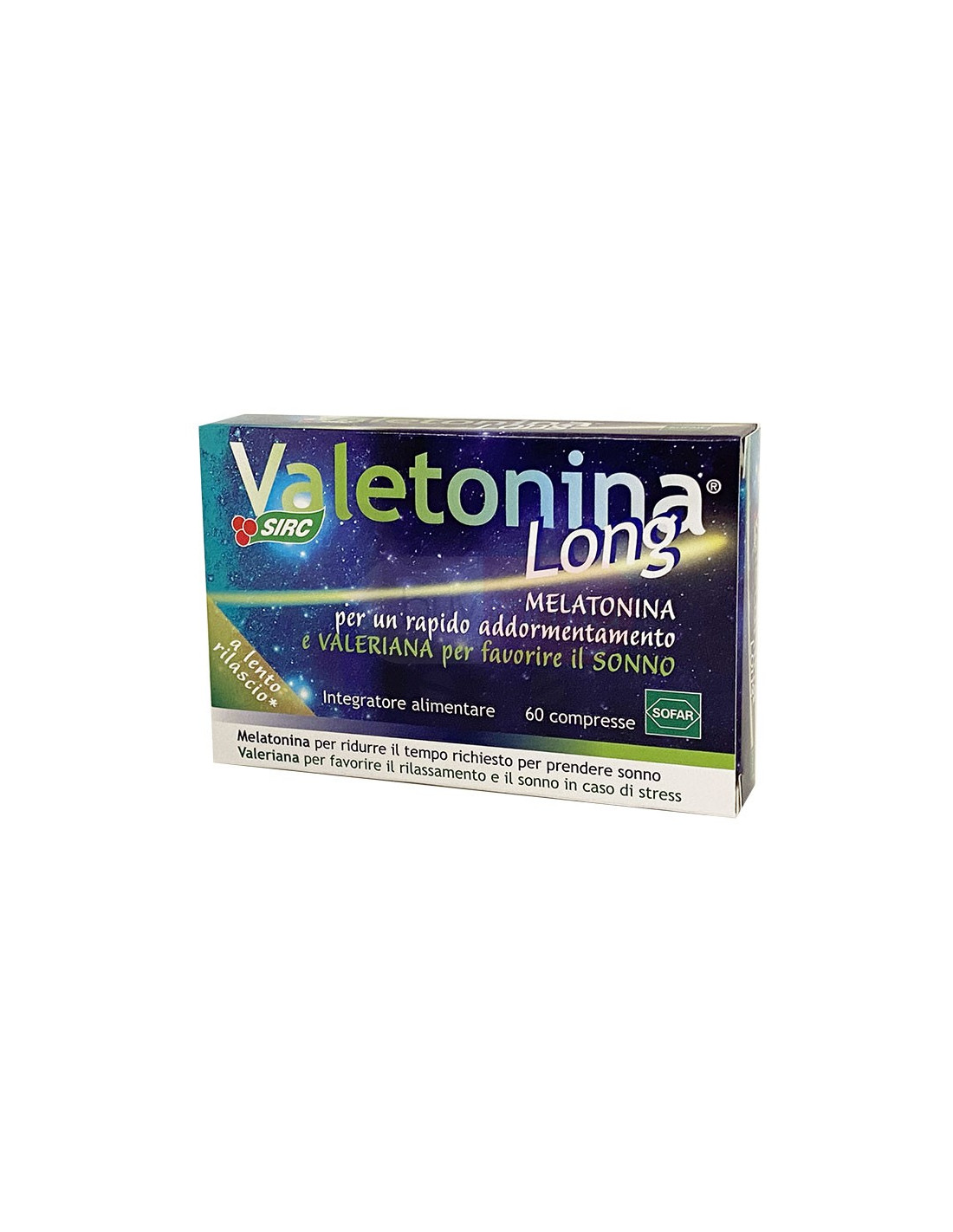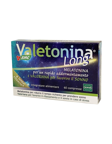 A cosa serve Valetonina Long ? Valetonina Long è un integratore alimentare a base di radice di Valeriana, pianta utile per favorire il rilassamento e il sonno in caso di stress, e Melatonina, sostanza utile a ridurre il tempo richiesto per prendere sonno; l'effetto benefico si ottiene con l'assunzione, poco prima di coricarsi, di 1 mg di melatonina. In Valetonina Long è stata concepita con una formulazione innovativa, che permette il rilascio dei suoi due componenti in due tempi differenti, garantendo cosi una doppia e prolungata azione. Infatti, le compresse di Valetonina Long presentano un rivestimento esterno che si scioglie rapidamente, nel quale è contenuta la Melatonina, sostanza che aiuta a ridurre il tempo necessario per addormentarsi, l'interno della compressa, invece è costituito da Valeriana, il cui rilascio avviene in un secondo tempo, favorendo il rilassamento e quindi, contribuendo ad ottenere un sonno prolungato durante la notte. Cos'è la Melatonina ? La Melatonina (N-Acetil-5-idrossitriptamina) è un ormone secreto principalmente da una ghiandola posta alla base del nostro cervello: la ghiandola pineale detta anche epifisi.Si tratta, quindi, di una sostanza fisiologicamente presente nel nostro organismo, la cui biosintesi parte dal triptofano, un aminoacido contenuto anche in molti alimenti, per azione di un enzima (N-acetil-transferasi) la cui attività aumenta durante l'assenza di luce: infatti, il principale fattore che regola la produzione e secrezione di melatonina è appunto la luce che, agendo attraverso il tratto retino-ipotalamico, ne inibisce la sintesi. È noto, infatti, che le concentrazioni plasmatiche di melatonina durante la notte sono da 3 a 10 volte superiori rispetto a quelle registrate nelle ore diurne. La principale funzione della melatonina è quella di fornire all'organismo l'informazione sulla durata del giorno e della notte agendo come trasduttore della luce: una sorta di orologio biologico, mediante il quale l'intero nostro organismo si adatta all'ambiente circostante. Fondamentale è quindi la sua produzione notturna da parte della ghiandola pienale, per la regolazione del ciclo sonno-veglia. Con il passare degli anni, si riduce sensibilmente la produzione endogena di melatonina e questo fenomeno è considerato il motivo dell'elevata frequenza di disturbi nel sonno riscontrata a partire dalla mezza età e che si aggrava con l'avanzare degli anni. Negli insonni è stato dimostrato che, dopo assunzione di melatonina per tre settimane, la qualità del sonno migliora, i risvegli notturni si riducono, comunque sono più brevi e soprattutto, si accorcia il periodo di latenza nell'addormentamento, cioè ci addormenta prima. La Melatonina consente di dormire meglio la notte per essere più svegli durante il giorno. In Valetonina Long, è presente l'estratto secco di radice di Valeriana, una pianta universalmente nota per le sue proprietà rilassanti, che possono essere attribuite soprattutto alla presenza di composti, quali l'acido valerenico.In questo modo, la valeriana contribuisce a ridurre gli stati di tensione e di agitazione, e favorisce, dunque un sonno sereno. L'assunzione di Valetonina Long rappresenta un valido e documentato contributo per favorire, in modo naturale, il corretto ripristino del sonno che può risultare alterato per il decrescere della produzione endogena di melatonina o reso difficoltoso a causa di stress o ansia. Ingredienti: Agenti di carica: cellulosa microcristallina, idrossipropilmetilcellulosa; Valeriana(Valeriana officinalis L. radici) estratto secco tit. 0,8% in acidi valerenici;rivestimento esterno (agenti di rivestimento: idrossipropilmetilcellulosa, talco epolidestrosio, maltodestrine, trigliceridi a media catena, colorante: biossido dititanio). Agenti antiagglomeranti: biossido di silicio, magnesio stearato; Melatonina.Caratteristiche nutrizionaliAppoorti medi dicomponenti caratterizzanti per 100 g per compressa Valeriana 33,3 g 100 mg Melatonina 333 mg 1 mg Formato: 60 compresse Come usare Valetonina Long Si consiglia di assumere 1 compressa al giorno preferibilmente mezz'ora prima di coricarsi. AvvertenzeNon superare la dose giornaliera consigliata. Tenere fuori dalla portata dei bambini al di sotto dei 3 anni di età. Gli integratori alimentari non vanno intesi come sostituiti di una dieta variata ed equilibrata e di un sano stile di vita. ConservazioneConservare in luogo fresco e asciutto, a temperatura inferiore a 25°C.