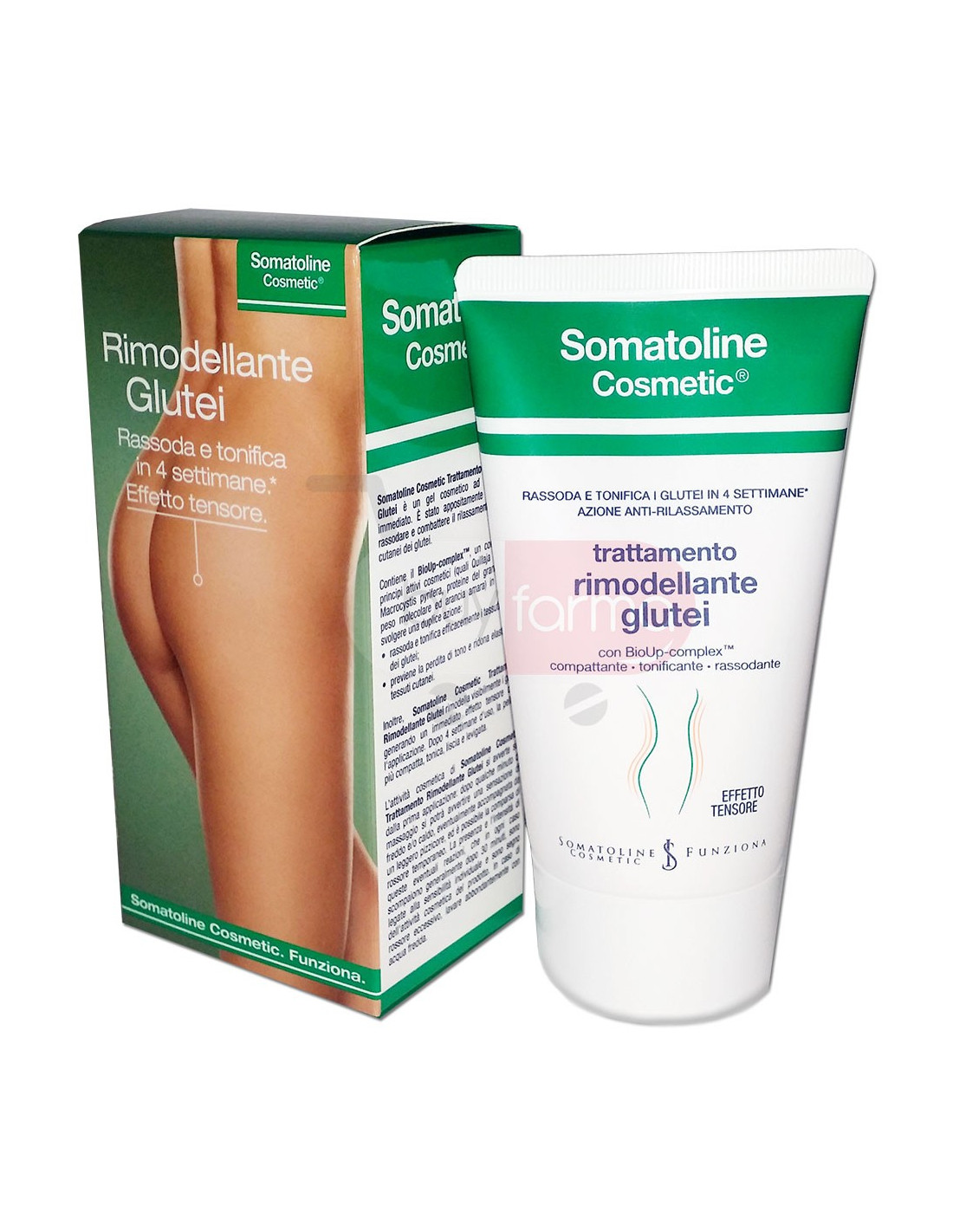 Caratteristiche Prodotto Somatoline Cosmetic Trattamento Rimodellante Glutei contiene il BioUp-complex, un complesso di principi attivi cosmetici (quali Quillaja saponaria, Macrocystis pyrifera, proteine del grano ad alto peso molecolare ed arancia amara) in grado di svolgere una duplice azione: - Rassoda e tonifica efficacemente i tessuti cutanei dei glutei;- Previene la perdita di tono e ridona elasticità ai tessuti cutanei. Inoltre Somatoline Cosmetic Trattamento Rimodellante Glutei rimodella visibilmente i glutei generando un immediato effetto tensore dopo l'applicazione.Dopo 4 settimane d'uso, la pelle è più compatta, tonica, liscia e levigata. Le valutazioni cliniche strumentali dimostrano che, grazie all'utilizzo costante e corretto e al massaggio di applicazione: - Rassoda e tonifica i tessuti cutanei dei glutei in 4 settimane;- Rimodella visibilmente l'area glutea in 4 settimane;- Leviga e compatta la pelle. Consigli d'uso Si consiglia di applicare il prodotto due volte al giorno per quattro settimane.