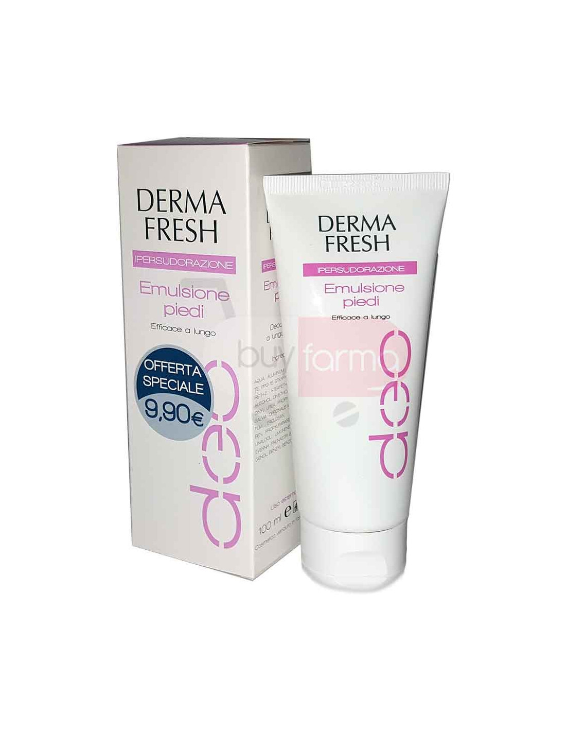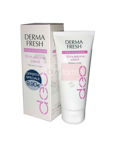 Caratteristiche Prodotto La sudorazione è essenziale per mantenere una corretta e costante temperatura corporea rispetto all'ambiente che ci circonda.Le ghiandole che producono il sudore sono di due tipi: eccrine e apocrine.Il sudore è per sé inodore, ma attaccato dai batteri normalmente presenti sulla pelle, si decompone producendo cattivo odore. Nell'adolescenza la maturazione degli organi riproduttivi influenza le ghiandole apocrine, rendendo il sudore più ricco di acidi grassi e proteine che vengono degradati dalla flora cutanea residente, producendo più frequentemente cattivo odore. L'Ipersudorazione è una traspirazione particolarmente copiosa, può essere legata a diversi fattori: condizioni climatiche, attività fisica, tensione emotiva, condizioni patologiche.Un sudore particolarmente maleodorante è una condizione molto più diffusa di quanto si pensi.Si può risolvere con una frequente e accurata detersione della pelle e l'impiego di prodotti mirati. C'è chi ha la pelle particolarmente sensibile, chi soffre di allergie o intolleranze, ma è possibile scegliere prodotti deodoranti specifici rispettosi della natura della cute.Una delle prime regole da rispettare per evitare la formazione di cattivi odori consiste nel curare adeguatamente la propria igiene personale, soprattutto nelle zone sede delle ghiandole sudoripare. In queste zone è poi necessario applicare sostanze deodoranti in grado di contrastare la formazione dei cattivi odori come Dermafresh Ipersudorazione Emulsione Piedi: - Contrasta l'eccessiva traspirazione plantare- Combatte efficacemente il cattivo odore- Previene le screpolature interdigitali della cute, le affezioni micotiche e/o batteriche- Rinfresca e ammorbidisce la pelle Consigli d'uso Si consiglia di applicare una piccola quantità di emulsione sui piedi, accuratamente lavati e asciugati.Massaggiare delicatamente fino a completo assorbimento.