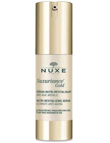 NUXE Nuxuriance Gold SÉRUM NUTRI-REVITALISANT Descrizione Siero nutritivo, per pelli secche, indebolite dall'età.Formato Flacone da 30 mlCod. 0A47844