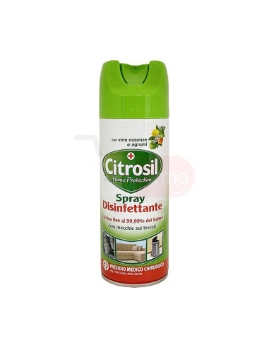 A cosa serve Citrosil Home Protection Spray Disinfettante ? Citrosil Home Protection Spray Disinfettante elimina fino al 99,99% di germi e batteri, senza lasciare residui nè macchie sui tessuti. Inoltre elimina i cattivi odori e, grazie alle essenze di origine vegetale, lascia un piacevole profumo naturale. Formato: 300ml Come usare Citrosil Home Protection Spray Disinfettante Per un'azione disinfettante contro batteri, lieviti e muffe spruzzare da almeno 25 cm di distanza in maniera uniforme su tutta la superficie finchè non sia visibilmente bagnata. Lasciare agire 15 minuti. Ripetere dopo ogni azione di pulizia.Citrosil Home Protection Spray Disinfettante può essere utilizzato:- Sui tessuti d'arredo come rivestimenti tessili di divani, poltrone, sedie, testate del letto, cuscini, materassi, tende, tappeti, moquette, sedili e tappetini auto, passeggini. Prima di utilizzare il prodotto testarlo su una parte nascosta del tessuto per verificarne la resistenza.- Sulle superfici dure della casa come tavoli, maniglie, ringhiere, pattumiere, cornette telefoniche, sanitari, aree dedicate agli animali domestici, oggetti vari. Per eliminare gli odori spruzzare il prodotto verso l'alto per qualche secondo.