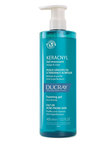KERACNYL Gel detergente Descrizione Deterge e purifica la pelle grassa o a tendenza acneica senza seccarla e favorisce l'eliminazione delle imperfezioni grazie alla Myrtacine. Senza sapone. Modalità d'uso Applicare mattina e sera sulla pelle umida. Creare una schiuma, poi risciacquare abbondantemente. Può essere usato su pre-adolescenti a partire dai 9 anni. Componenti Water (Aqua), Zinc Coceth Sulfate, Ceteareth-60 Myristyl Glycol, Glycerin, Lauryl Betaine, Decyl Glucoside, Polysorbate 20, Trideceth-9, Blue 1 (CI 42090), Citric Acid, Fragrance (Parfum), Glyceryl Laurate, Myrtus Communis Leaf Extract, PEG-40 Hydrogenated Castor Oil, PEG-5 Ethylhexanoate, PPG-26-Buteth-26, Sodium Benzoate, Sodium Chloride, Sodium Hydroxide, Trisodium Ethylnediamine Disuccinate. Avvertenze Risciacquare in caso di contatto con gli occhi. Conservazione Validità dopo la prima apertura: 12 mesi. Formato Flacone da 400 ml. Cod. IT011065