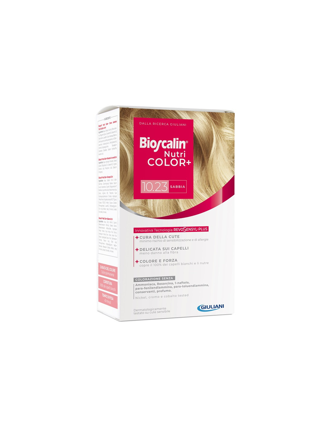 Bioscalin Nutricolor Plus 10,23 Sabbia Crema Colorante 40 Ml+ Rivelatore Crema 60 Ml + Shampoo 12 Ml + Trattamento Finale Balsam