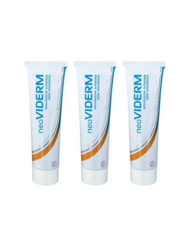 A cosa serve NeoViderm Emulsione Cutanea ? Grazie alla sua azione protettiva ed idratante, NeoViderm Emulsione Cutanea lenisce e dona sollievo alla pelle, aiutandola nel processo fisiologico di normalizzazione.NeoViderm Emulsione Cutanea è indicata per proteggere alterazioni di pelli sensibili e reattive per precedenti danni da scottature solari, ustioni e trattamenti radioterapici.Indicata per adulti, bambini e neonati in caso di: Scottature solari; Ustioni di primo grado e secondo grado superficiali; Ulcere superficiali; Protezione pre e post trattamento radioterapico; Irritazioni cutanee e manifestazioni comportanti rossore; Screpolature cutanee anche recidivanti; Stati desquamativi; Eritema; Secchezza cutanea; Piccole abrasioni. Indicata per adulti in caso di: Trattamento post-tatuaggi; Peeling chimici. Formato: 3 tubetti da 100ml per un totale di 300ml. Come si usa NeoViderm Emulsione Cutanea Agitare il flacone e applicare sulle zone interessate con leggero massaggio fino a completo assorbimento. Frequenza d'uso: Ogni 4 ore senza esposizione diretta al sole (all'aperto in zone ombreggiate o poco soleggiate); Ogni 2 ore in caso di esposizione al sole; Subito dopo aver lavato o in caso di intensa sudorazione dell'area di applicazione; Secondo parere medico.