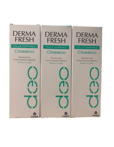 Caratteristiche Prodotto La sudorazione è essenziale per mantenere una corretta e costante temperatura corporea rispetto all'ambiente che ci circonda.Le ghiandole che producono il sudore sono di due tipi: eccrine e apocrine.Il sudore è per sé inodore, ma attaccato dai batteri normalmente presenti sulla pelle, si decompone producendo cattivo odore. Nell'adolescenza la maturazione degli organi riproduttivi influenza le ghiandole apocrine, rendendo il sudore più ricco di acidi grassi e proteine che vengono degradati dalla flora cutanea residente, producendo più frequentemente cattivo odore. L'Ipersudorazione è una traspirazione particolarmente copiosa, può essere legata a diversi fattori: condizioni climatiche, attività fisica, tensione emotiva, condizioni patologiche.Un sudore particolarmente maleodorante è una condizione molto più diffusa di quanto si pensi.Si può risolvere con una frequente e accurata detersione della pelle e l'impiego di prodotti mirati. C'è chi ha la pelle particolarmente sensibile, chi soffre di allergie o intolleranze, ma è possibile scegliere prodotti deodoranti specifici rispettosi della natura della cute.Una delle prime regole da rispettare per evitare la formazione di cattivi odori consiste nel curare adeguatamente la propria igiene personale, soprattutto nelle zone sede delle ghiandole sudoripare. In queste zone è poi necessario applicare sostanze deodoranti in grado di contrastare la formazione dei cattivi odori come Dermafresh Classico: - Garantisce freschezza a lungo- Neutralizza gli odori del corpo- Mantiene l'equilibrio fisiologico della pelle e la normale traspirazione Formato: 3 confezioni di Dermafresh da 100ml per un totale di 300ml. Consigli d'uso Si consiglia di applicare Dermafresh Classico sulla pelle perfettamente asciutta e pulita, massaggiando delicatamente fino a completo assorbimento.