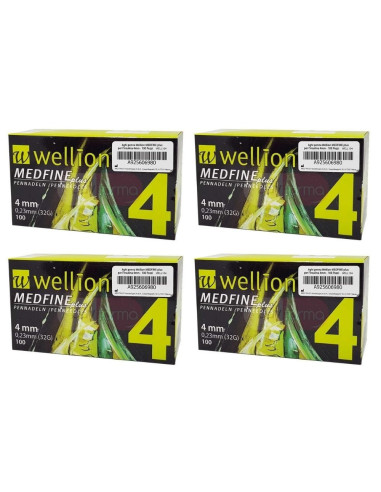 4X Wellion Medfine Plus 4mm - 400 Aghi da Insulina - Promo Pack