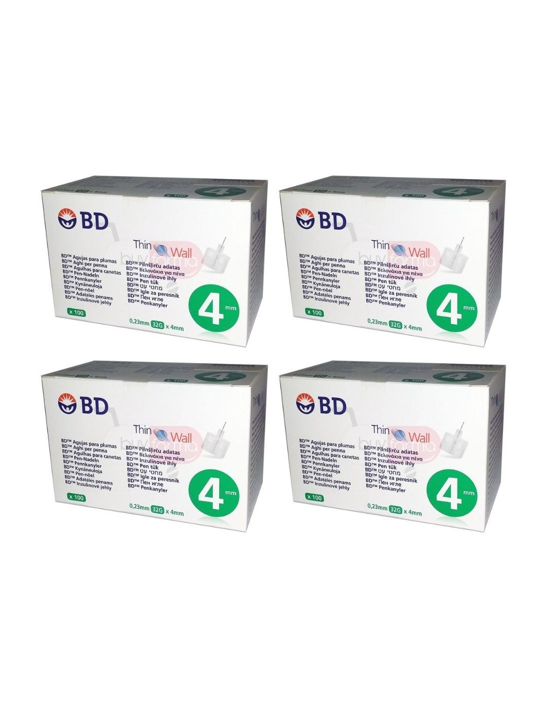 4X BD Thinwall 4mm 32G - 400 Aghi da Insulina - Promo Pack