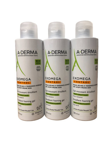 A cosa serve A-Derma Exomega Gel Detergente ? A-Derma Exomega Gel Detergente deterge delicatamente la pelle, lenendo e proteggendo soprattutto le pelli secche a tendenza acneica.A-Derma Exomega Gel Detergente lenisce la sensazione di prurito causata dalla secchezza cutanea e protegge quotidianamente da questo problema. Senza profumo e senza sapone, adatto a neonati, bambini e adulti. Formato: 3 confezioni da 500ml per un totale di 1,5L (1500ml). Come si usa A-Derma Exomega Gel Detergente Applicare sulla pelle bagnata, risciacquare e asciugare senza strofinare.