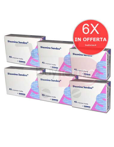 A cosa serve Diosmina Sandoz ? Integratore di bioflavonoidi a base di Diosmina ed Esperidina titolati e standardizzati. Tali sostanze sono contenute in vari alimenti vegetali.Diosmina Sandoz è indicata in tutti gli stati di ridotto apporto con la dieta di bioflavonoidi o di aumentato fabbisogno legato a particolari situazioni. Le sostanze contenute nel prodotto possono essere utili al trofismo del microcircolo con riguardo alla permeabilità e fragilità capillare. Formato: 6 confezioni da 45 compresse per un totale di 270 compresse. Come usare Diosmina Sandoz Si consiglia una dose giornaliera di una compressa durante i pasti da deglutire con mezzo bicchiere d'acqua. Avvertenze Non superare la dose giornaliera consigliata. Gli integratori non vanno intesi come sostituti di una dieta variata. Conservare in luogo fresco ed asciutto al riparo dalla luce. Tenere fuori dalla portata dei bambini al di sotto dei tre anni. Non assumere in gravidanza.