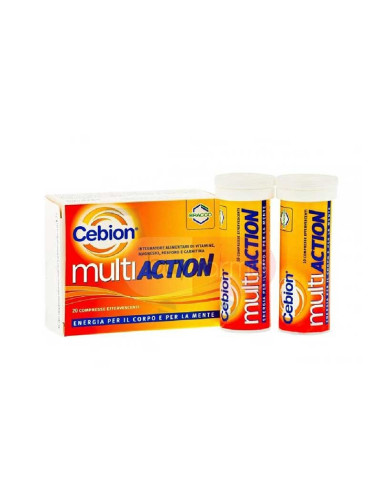 A cosa serve Cebion MultiAction ? Il nostro organismo deve affrontare sempre più spesso situazioni in cui domina lo stress psicofisico, sia esso dovuto a fattori ambientali, sia a eventi di studio o lavorativi. In tutti questi casi in cui è necessario mantenersi attivi ed efficienti sia mentalmente, sia fisicamente, è importante coadiuvare l'organismo con una integrazione fisiologica: Vitamina C: Capace di sostenere una corretta risposta immunitaria, attivando la risposta naturale dei globuli bianchi nella difesa dagli agenti infettivi, e di contrastare l'aggressione degli agenti ossidanti esterni. Vitamine gruppo B: Elementi indispensabili al corretto metabolismo cellulare e alla formazione di energia per il nostro organismo. Acido Folico: Promuove la formazione di globuli rossi Vitamina PP: Regola lo sviluppo embrionale delle cellule nervose e provvede ad un buon funzionamento del sistema nervoso. Magnesio: Minerale che regola la contrazione muscolare e l'eccitabilità nervosa, mantenendo una corretta efficienza muscolare e nervosa, e svolge un ruolo chiave nei meccanismi dell'apprendimento della memoria, migliorando così le funzioni cognitive. DL-Fosfoserina: Sostanze già presente nell'organismo, rappresenta il costituente principale dei fosfolipidi cerebrali: con la vitamina B6 e B12 supporta le funzioni cerebrali, risultando particolarmente utile al mantenimento dell'efficienza mentale e nei casi di affaticamento. L-Carnitina: Sostanza che il nostro organismo utilizza, in presenza di sufficiente ossigenazione, per convertire completamente gli acidi grassi in energia; è utile per un buon funzionamento dell'apparato muscolare; riducendo notevolmente la produzione di acido lattico, previene la fatica ed evita l'insorgenza di crampi. Come usare Cebion MultiAction Si consiglia l’assunzione di 1 compressa al giorno, preferibilmente al mattino, da sciogliere in un bicchiere d’acqua.Per ottenere un'ottimale integrazione con Cebion MultiAction, si consiglia di assumerlo per almeno 2-3 settimane.