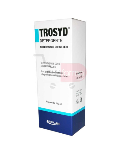 Caratteristiche Prodotto Trosyd Detergente grazie alla speciale formula shampoo-detergente è adatto alla pulizia quotidiana di viso, corpo e cuoio capelluto.La sua formula contiene attivi, quali l'Acido Lattico, che contribuiscono a creare un ambiente sfavorevole alla proliferazione batterica e fungina.La presenza inoltre di estratti vegetali lenisce le irritazioni e il prurito che possono anche essere causati dalla presenza di microrganismi. Grazie a tensioattivi delicati è indicato per una pulizia quotidiana della cute, nel rispetto del suo film idrolipidico protettivo.Adatto nel caso si frequentino piscine, strutture sportive, saune e spiagge (luoghi dove è maggiore il rischio di infezioni da funghi e batteri) Prodotto senza profumo e conservanti. Consigli d'uso Si consiglia di applicare una piccola quantità di prodotto sulla cute e/o sui capelli bagnati massaggiando fino a formare una leggera schiuma.Lasciare agire per alcuni minuti e risciacquare. Ben tollerato ed adatto anche ad un uso frequente.