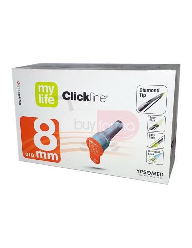 Caratteristiche Prodotto - Punta dell'ago a 6 sfaccettature per un'iniezione facilitata- Click udibile a conferma di un fissaggio sicuro- Speciale trattamento superficiale in silicone per un comfort superiore durante l'iniezione- Tecnologia a parete sottile per un flusso più rapido del medicamento- Compatibile con tutte le principali marche di penne per iniezione. Consigli d'uso Mylife Click Fine è semplicissimo da fissare sull'estremità della penna da insulina, basta rimuovere l'adesivo di protezione dall'ago e spingere quest'ultimo sopra le zigrinature della penna, si otterrà un effetto "Click" semplice e rapido.