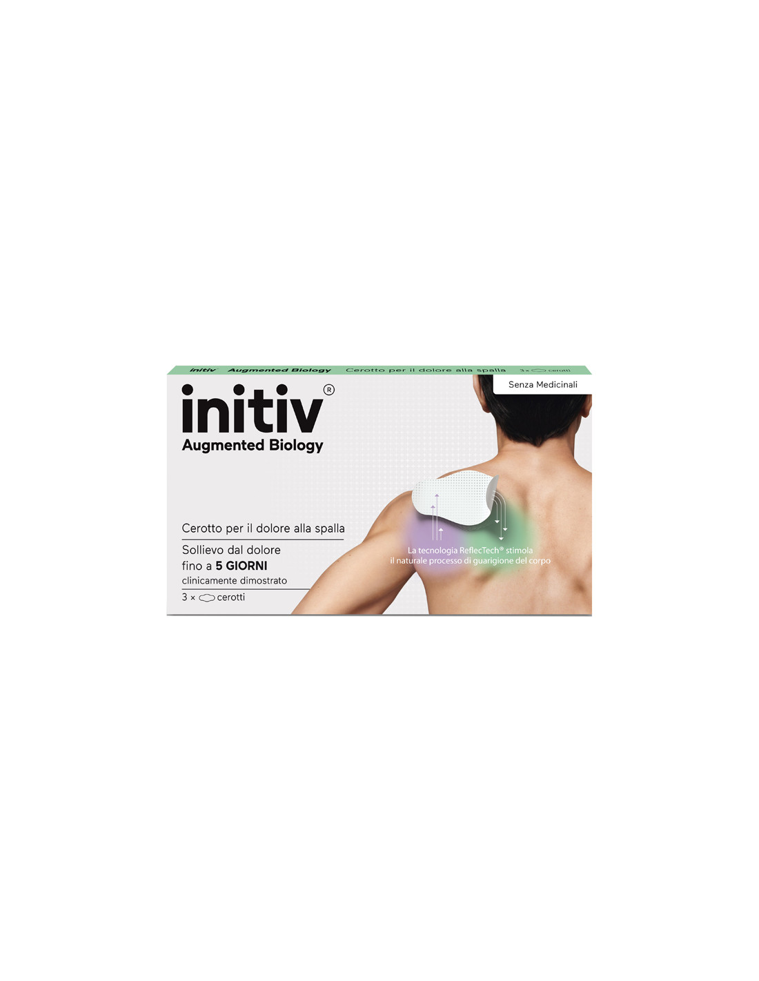 Il corpo assorbe ed emette fisiologicamente energia a infrarossi. Lo strato minerale ReflecTech, presente nel cerotto, trattiene e a sua volta riflette l'energia emessa dal corpo sull'area dolorante. La tecnologia su cui si basa initiv aumenta la microcircolazione del sangue, migliora la mobilità e l'apporto di ossigeno nella zona dolorante per alleviare il dolore.