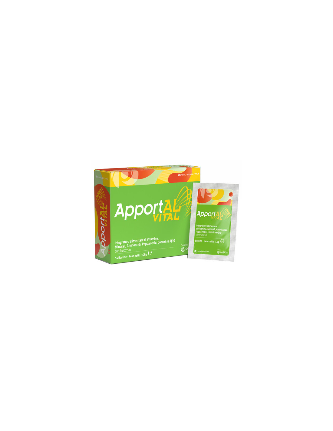 Fruttosio (51,8%), maltodestrine, L-arginina; acidificante: acido citrico; miele in polvere, L-carnitina tartrato, Ultramag-magnesio sucrosomiale (magnesio ossido, amido di riso pregelatinizzato, esteri saccarici degli acidi grassi, lecitina di girasole, fosfato tricalcico, farina di riso), pappa reale liofilizzata, aromi, Sideral r.m. (ferro pirofosfato, amido di riso pregelatinizzato, esteri saccarici degli acidi grassi, lecitina di girasole, fosfato tricalcico, farina di riso), vitamina C (acido L-ascorbico); agenti antiagglomeranti: fosfato tricalcico, biossido silicio; vitamina E (acetato di DL-alfa-tocoferile), eleuterococco [Eleutherococcus senticosus (Rupr. et Maxim) Maxim] radice e.s., vitamina PP (nicotinamide), vitamina D3 (colecalciferolo), coenzima Q10, acido pantotenico (calcio D-pantotenato), Ultrazin-zinco sucrosomiale (ossido di zinco, amido di riso pregelatinizzato, ossidi saccarici degli acidi grassi, lecitina di girasole, fosfato tricalcico, farina di riso), Ultrasel-selenio sucrosomiale (amido di riso pregelatinizzato, esteri saccarici degli acidi grassi, selenito di sodio, lecitina di girasole, fosfato tricalcico, farina di riso), tocotrienoli; colorante: beta-carotene; Ultraiod-iodio sucrosomiale (amido di riso pregelatinizzato, esteri saccarici degli acidi grassi, iodato di sodio, lecitina di girasole, fosfato tricalcico, farina di riso), vitamina B12 (cianocobalamina), vitamina B1 (cloridrato di tiamina), vitamina H (D-biotina).