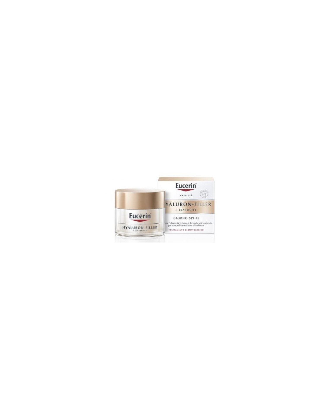 Eucerin HYALURON-FILLER + ELASTICITY Crema Giorno contiene SPF 15 e filtri UVA per una maggiore protezione dai raggi solari che possono rendere più profonde le rughe ed accelerare il processo di invecchiamento cutaneo.