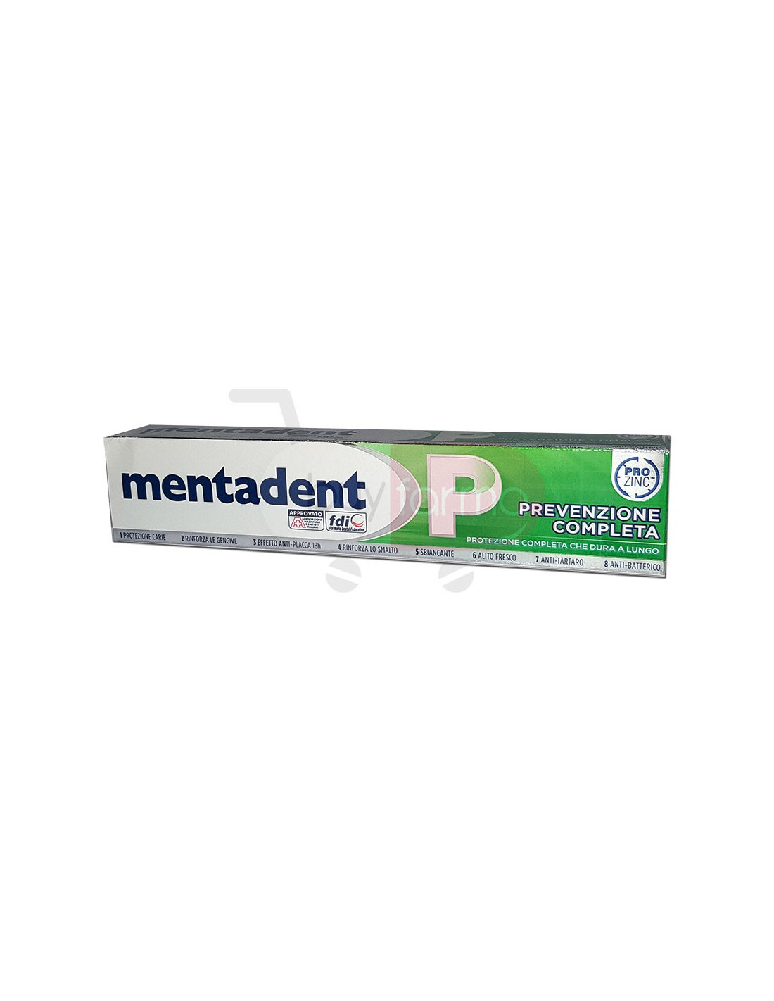 Caratteristiche Prodotto Mentadent crede che l'azione quotidiana per una corretta igiene orale sia più efficace se può contare su qualcuno che facilita e supporta il tuo impegno.Con questa convinzione ha creato negli anni una serie di iniziative e di strumenti per esserti vicino in tutti gli ambiti dove l'esperienza e la serietà di Mentandent ti possono aiutare. La formula di Mentandent P, con Pro Zinc e Fluoro, offre 8 azioni per una protezione completa: - Protegge dalla carie- Rinforza le gengive- Fornisce un effetto anti-placca fino a 18 ore- Rinforza lo smalto- Rende denti più bianchi- Rinfresca l'alito- Combatte la formazione di tartaro§- Combatte i batteri Mentadent P soddisfa i requisiti ed è quindi di significativa utilità, unito ad una sostituzione regolare dello spazzolino e ad un suo corretto utilizzo.
