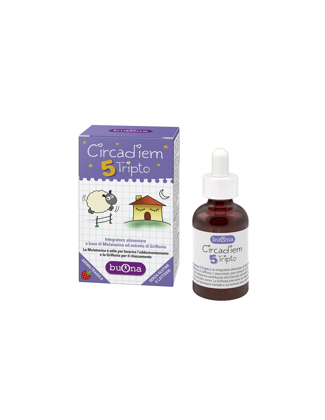 La melatonina contenuta in Circadiem 5 Tripto è utile per favorire l’addormentamento e il riposo notturno, poiché contribuisce alla riduzione del tempo richiesto per prendere sonno. La griffonia, titolata in 5-idrossitriptofano (5-HTP), interviene sul rilassamento (sonno), sul benessere mentale e sul normale tono dell’umore.