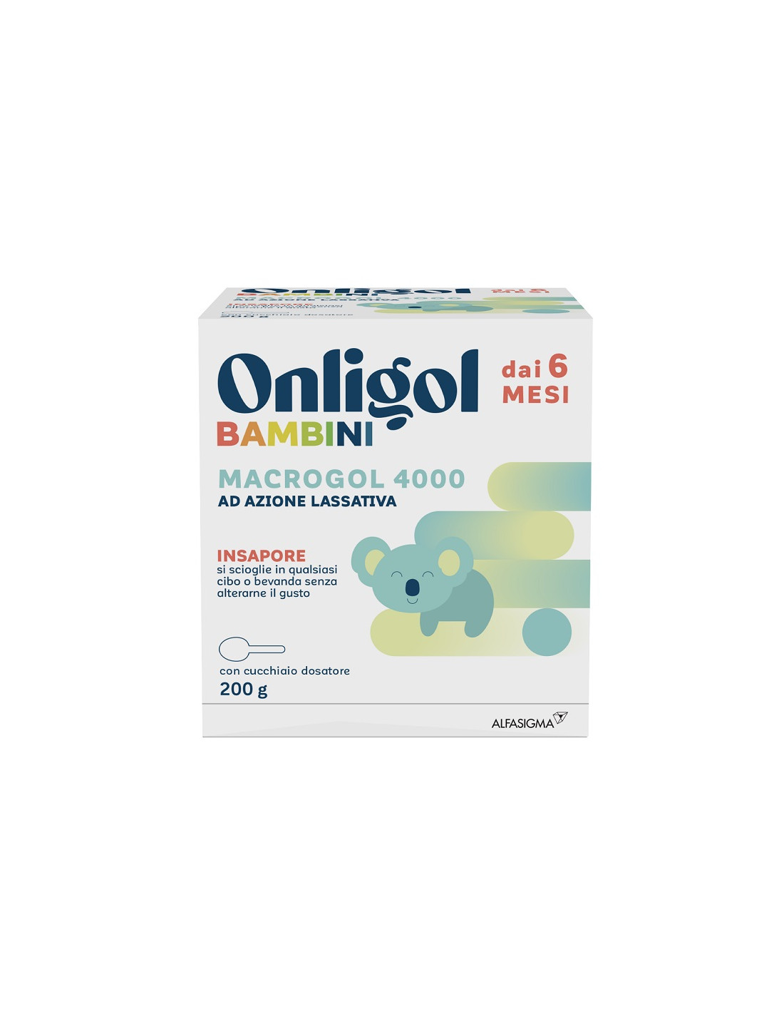 Onligol bambini è un lassativo in polvere per soluzione orale a base di Macrogol 4000.