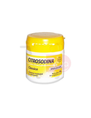 Caratteristiche Prodotto Tra le cause della cattiva digestione troviamo: - consumare velocemente i cibi: mangiare troppo velocemente può portare ad una serie di problemi diversi tra cui la cattiva digestione;- assumere troppi cibi, causando indigestione soprattutto se si mangia qualcosa che di norma non fa parte della vostra alimentazione;- assumere cibi troppo grassi, di difficile digeribilità;- abusare di alcool e caffeina;- lo stress, dato che lo stomaco è collegato alla nostra psiche; Avere uno stile di vita sano e corretto aiuta sicuramente anche la digestione, mantenendo equilibrati i vari pasti giornalieri. Quando però non riusciamo ad evitare l'indigestione è bene prendere Citrosodina Classica Compresse Masticabili al termine del pasto, in quanto riesce a riportare ad uno stato di benessere il nostro organismo. La sua azione terapeutica è resa possibile dalla presenza del bicarbonato di sodio, sale a digestione basica, che permette di andare a tamponare l’acidità dello stomaco e a favorire così il processo di digestione. La sua particolarità è quella di dare un sollievo immediato perché la sua azione è locale. Questo fa sì che Citrosodina non può essere utilizzata per il trattamento dei disturbi gastrici di natura cronica. Citrosodina è un prodotto che può essere assunto anche dai bambini e da donne in gravidanza.