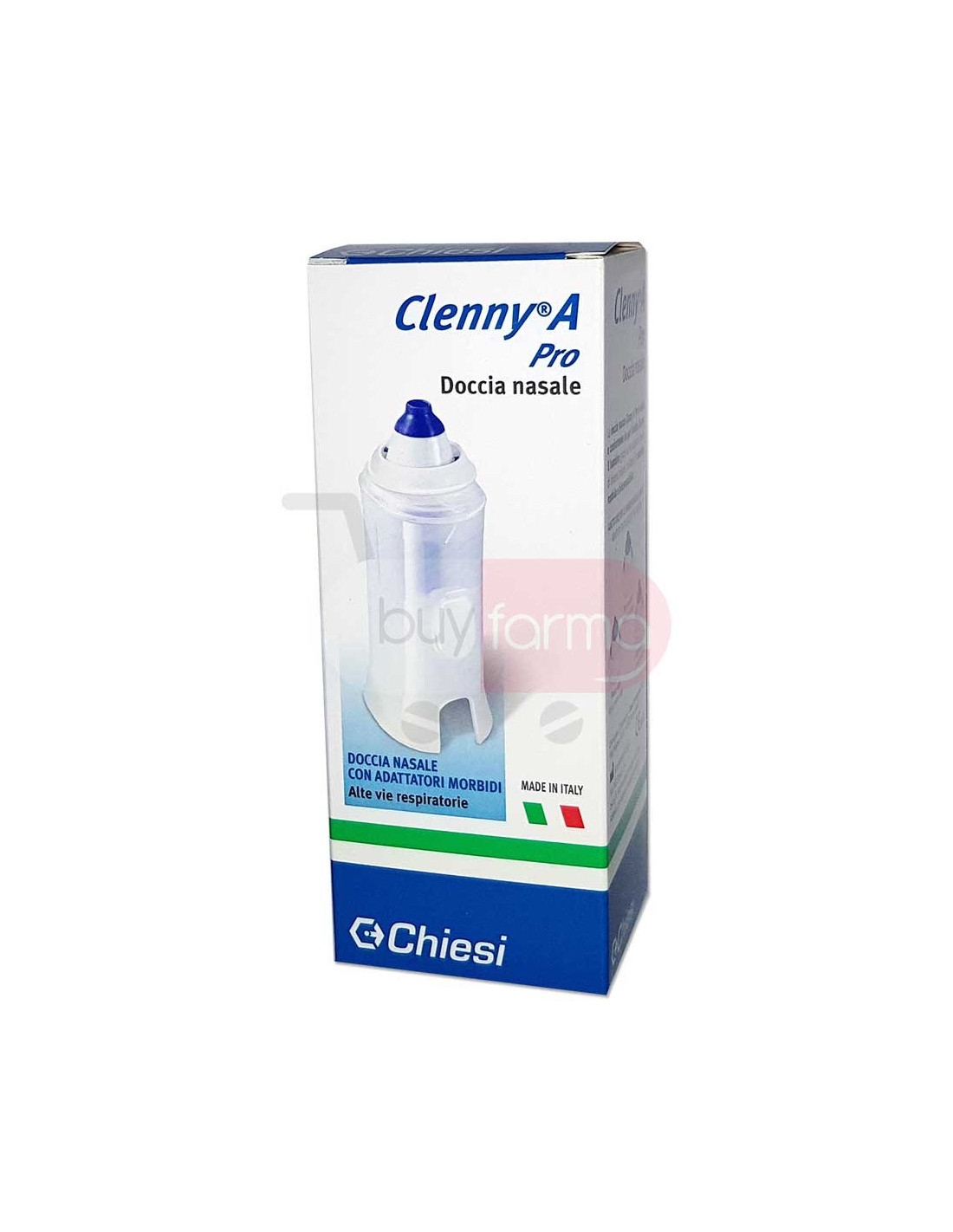 Caratteristiche Prodotto Clenny A Pro Doccia nasale eroga una nebulizzazione specifica per rimanere nell'ambito dei distretti del rinofaringe, e non scendere sino al livello polmonare.La doccia nasale Clenny A Pro è adatta e confortevole sia per l'adulto, che per il bambino grazie ai tre adattatori nasali di diverse misure, realizzate in materiale morbido e biocompatibile. Come funziona una doccia nasale ? La doccia nasale collegata al compressore, in questo caso Clenny A Pro, nebulizza per il lavaggio delle cavità nasali; la nebulizzazione è attivata da un pulsante posto sull'impugnatura.Sul corpo della doccia nasale sono presenti due camere adiacenti, di cui una destinata alla soluzione da nebulizzare, l'altra alla soluzione di recupero.Sulla parte superiore della doccia nasale si inseriscono gli adattatori nasali disponibili in 3 misure diverse a seconda della dimensione della narice del soggetto a cui è destinato. Quando usare una doccia nasale ? - Lavaggio delle cavità nasali (soluzione fisiologica, ipertonica o acqua termale). È utile nel bambino per aiutarlo nell'igiene nasale.Nell'adulto favorisce il lavaggio fisiologico del naso e può essere usato prima della terapia aerosolica nel tratto respiratorio al fine di coadiuvare la distribuzione del farmaco. - Terapia inalatoria a base di sostanze medicamentose (acido ialuronico, estratti vegetali, ecc). La somministrazione di farmaci può avvenire su indicazione di un medico, o del farmacista, che definisce il tipo di farmaco, le dosi di somministrazione e la durata del trattamento - Aiutare i bambini a respirare bene: infatti fino all'età di 1 anno il bimbo respira esclusivamente con il naso quindi, se il naso è chiuso, il bimbo respira con difficoltà, si sveglia durante la notte, fatica a mangiare e piange spesso.Per liberare bene il naso consigliamo il lavaggio con Clenny A Pro Doccia Nasale. Prodotto detraibile