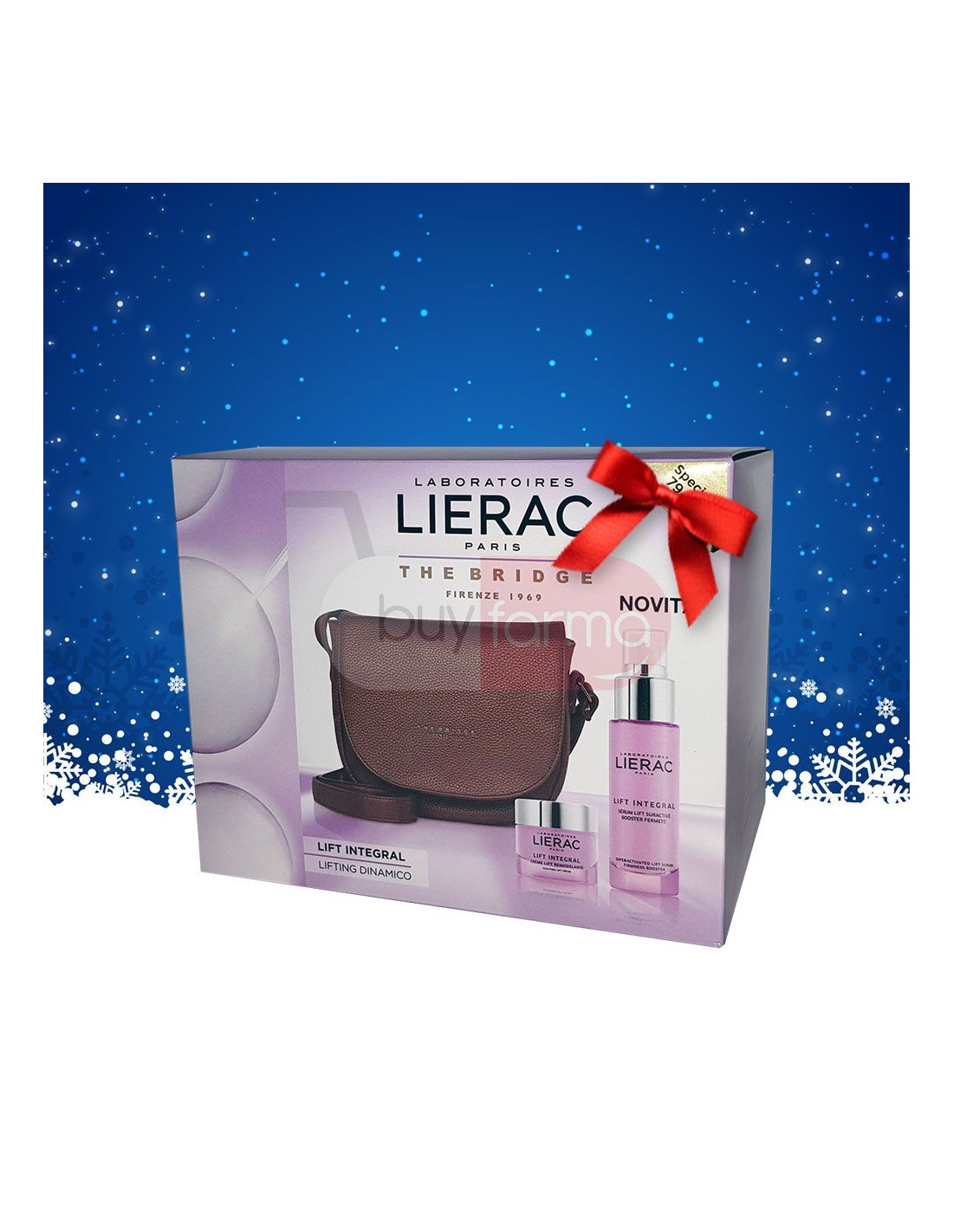 Lierac Coffret Lift Integral Crema Giorno + Siero con Borsa The Bridge in omaggio, disegnata in esclusiva per Lierac dallo storico marchio italiano rientra fra i migliori cofanetti regalo del 2017 /2018. (...)Caratteristiche ProdottoCon Lift Integral l'expertise di Lierac incontra l'eleganza del design The Bridge.Prova la sinergia della nuova linea Lift Integral, i trattamenti Lierac ad effetto lifting naturale:Lierac Lift Integral Crema Giorno Liftante Rimodellante da 15ml: La sua texture attiva, ideale per la pelle da normale a secca, ridinamizza l'ovale del viso, armonizza i volumi e corregge le rughe da rilassamento.Lierac Lift Integral Siero Liftante Booster di Tonicità da 30ml: Un siero-gel fresco ad effetto tensore immediato, Approfitta dell'esclusivo omaggio, un'elegante Borsa Postina disegnata in esclusiva per Lierac dal prestigioso marchio italiano The Bridge.Consigli d'usoSi consiglia di applicare Lierac Lift Integral Crema Giorno la mattina sul viso, mentre Lierac Lift Integral Siero Liftante può essere applicato mattina e sera su viso e décolleté.