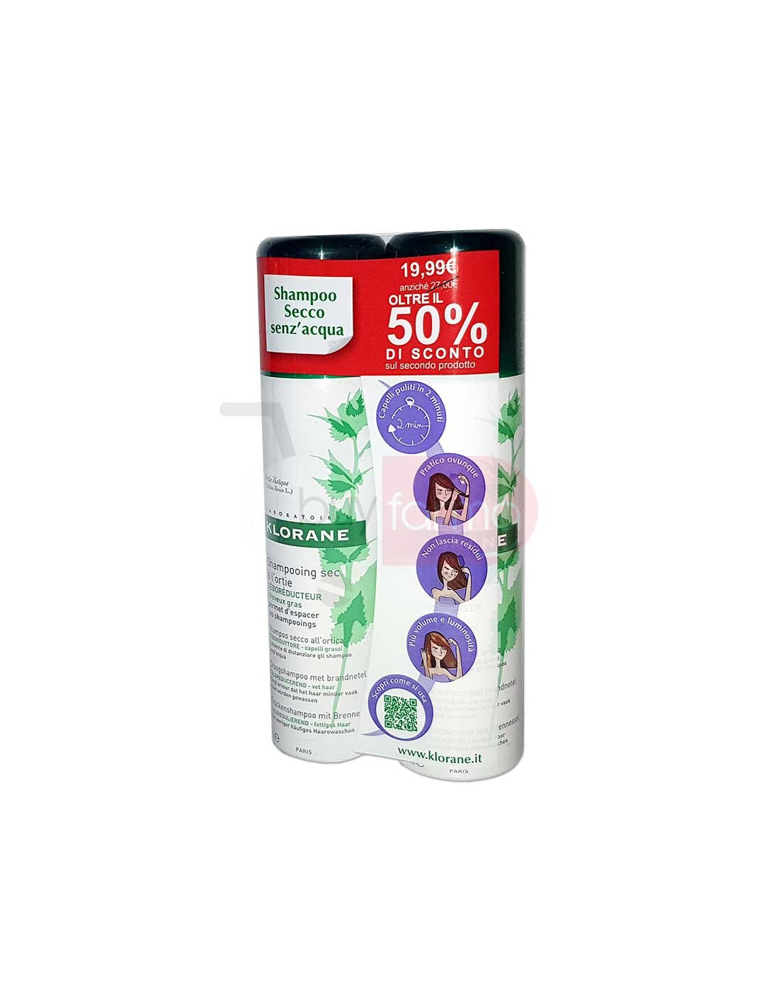 Klorane Bi-Pack - Shampoo Secco Seboriduttore all'Ortica da 2x150ml