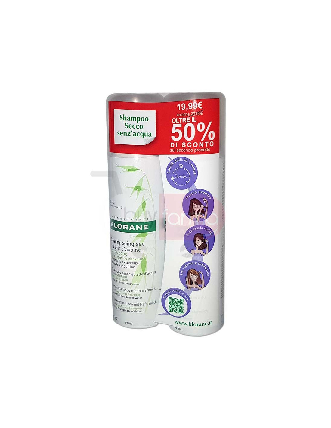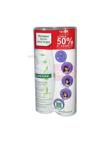 Klorane Bi-Pack - Shampoo Secco Extra-Delicato al Latte D'Avena da 2x150ml