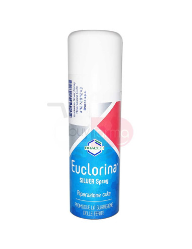 Caratteristiche Prodotto Euclorina Silver Spray Riparazione Cute crea una efficace barriera filmogena e protettiva coadiuvante i naturali processi di rigenerazione tessitale, creando un ambiente protetto dalle aggressioni microbiche. L'acido ialuronico agisce da agente filmante, favorendo l'idratazione dei tessuti, e il caolino agisce da assorbente in caso di ferite con essudato. Il complesso SCX-Powder, costituito da biossido di silicio funzionalizzato con ioni Argento e Clorexidina, grazie alle sue proprietà antimicrobiche garantisce che la barriera formata da Euclorina Silver Spray Riparazione Cute sia resistente agli attacchi da parte di microbi, migliorando così l'effetto della barriera protettiva sulla lesione. Consigli d'uso Prima dell'utilizzo pulire la cute ed asciugarla accuratamente. Agitare bene il flacone prima dell'erogazione. Applicare un sottile strato di polvere solo nella zona interessata, erogando da una distanza di circa 10cm. Non massaggiare: la polvere deve formare uno strato protettivo. Applicare 1 o 2 volte al giorno. Prodotto detraibile