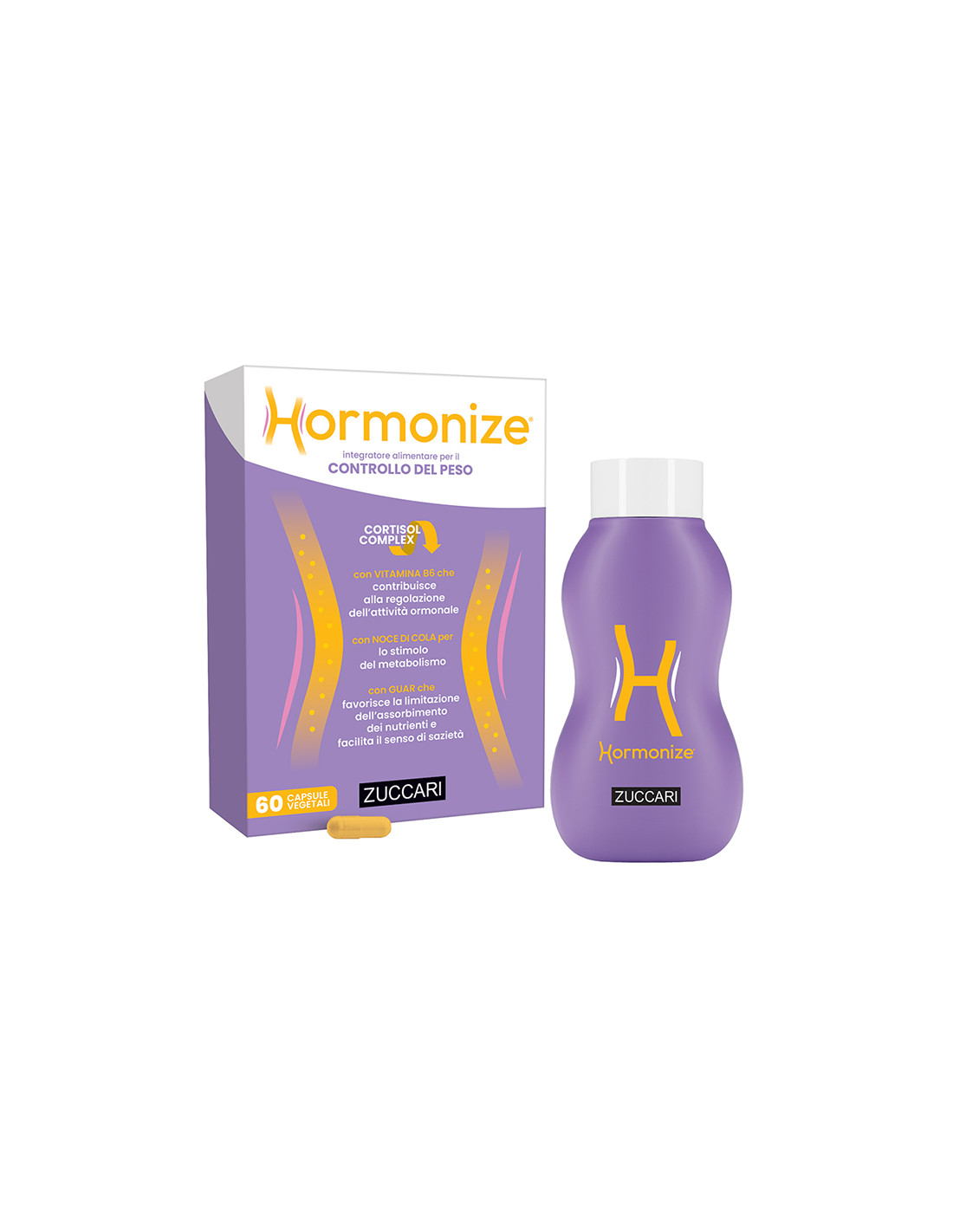 Integratore a base di noce di Cola che favorisce lo stimolo del metabolismo e lâequilibrio del peso corporeo, vitamina B6 che contribuisce alla regolazione dellâattività ormonale e cortisolcomplex, che combina fosfatidilserina allâazione tonico-adattogena del Basilico sacro, conosciuto anche come tulsi.